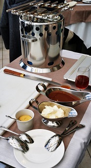 Entrée, plat, fromage et dessert. Vin, café, l’addition, s’il vous plaît. Débarrasser, dresser une nouvelle table …